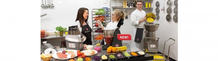 First, the chef cut cubes by hand, and then with a professional food preparation machine, HALLDE RG-250 diwash, – after which we place the videos side by side… Save time and money!